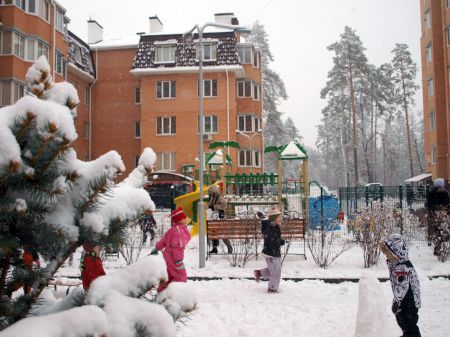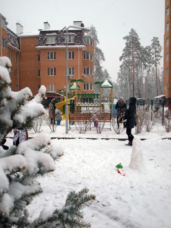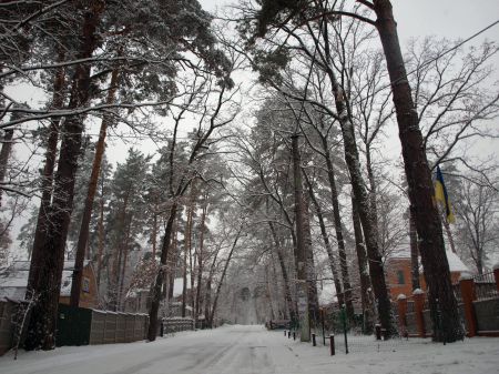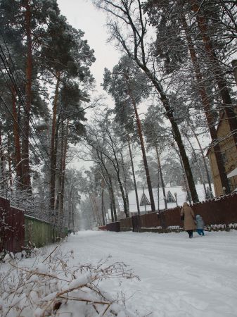 Позняки, снега полно. Уже ходили утром на прогулку, теперь еще идем