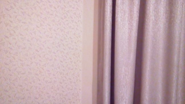 Наверное непонятное фото,это я сейчас при искусственном освещении сделала. Слева в цветочек обои,справа от них постенок возле окна однотонные обои на простенке,а совсем справа- это шторы (окно заштроенное)