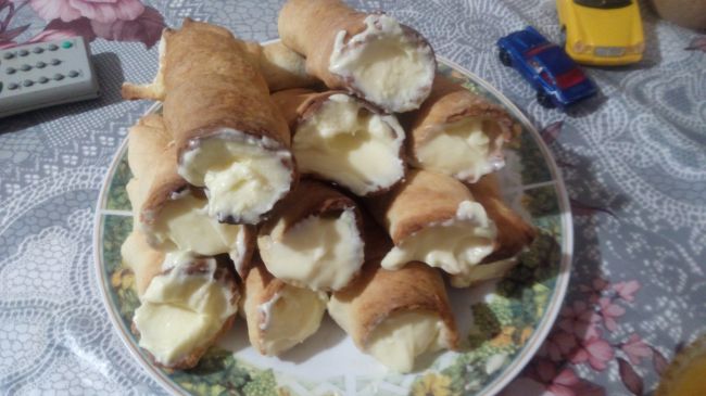тесто маргарит с содой и мукой,начинка сметана с ванилькой все,главное после выпечки в холоде подержать 2-3 часа