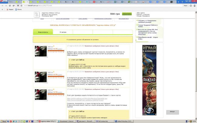 Объявление сразу же после оплаты было отключено, а в ответ на мои претензии продавец написал Нет там дирок и потертости там незначительние ненада выдумлять куртку стерала жидким спец средцтвом .извините но возврата небудет так как у уверена состоянии на все 100%